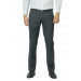 Textured charcoal grey flat front trousers made of 80% polyester and 20% viscose, two pockets on the sides, two welt pockets on the back, button and zipper, belt loops at the waistband and extended hems