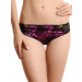 Purple and black brief with elasticated waistband, lace detail and flower detail on the front