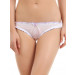 White bikini briefs with lavender ruffles at the waist and leg holes