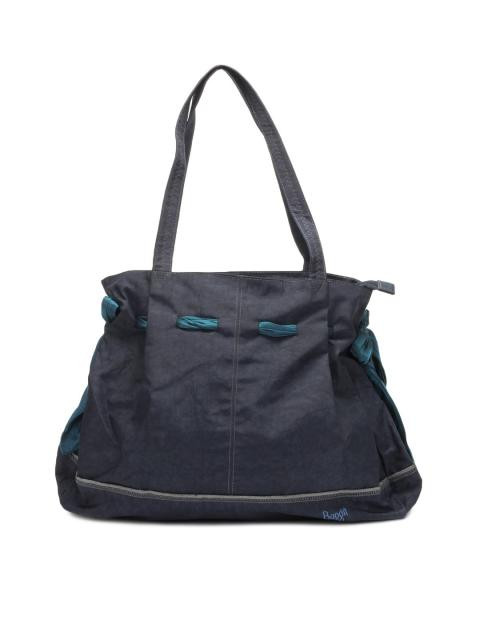 Navy blue handbag with two short handles