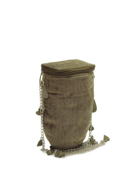 Olive green sling bag with a shining knitted fabric and synthetic lining