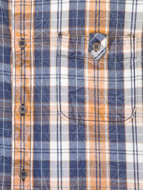 Brown and blue check full-sleeve shirt made of 100% cotton, has a tipped collar with buttons, full front button placket, pocket on left chest, and has a curved hem