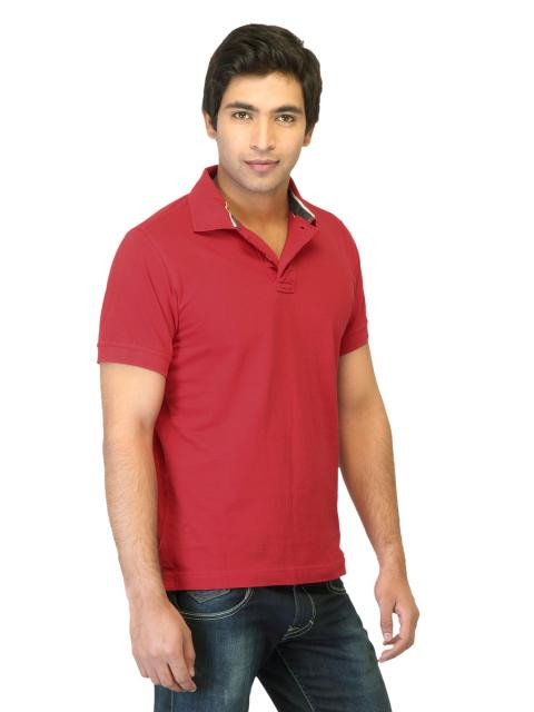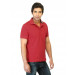 Red polo T-shirt made of 100% cotton, has a ribbed collar, a ruffled buttoned placket, short sleeves with ribbed cuffs and sleeve and a vented hem