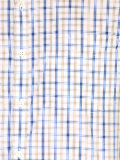 Blue, brown and white check shirt made of 100% washed cotton, has full sleeves with buttoned cuffs, full front buttoned placket, patch pocket on the left chest and a curved hem