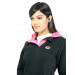 Black hooded jacket made of 80% cotton and 20% polyester, has full sleeves with ribbed cuffs, two zippered pockets on the sides, stripes running through the cuffs and hem, buttoned half-placket, stitch detailing in the chest area and branding on left chestTech Features: