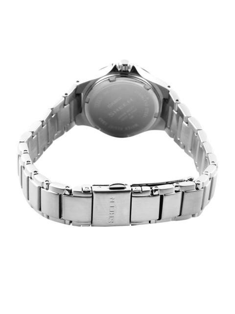 Case style: Analogue watch with a circular crystal-studded case and a stainless steel back