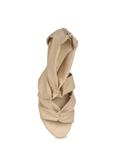 Beige X-shaped forefoot straps and midfoot straps that loop around the ankle and culminate at the zipped heel collar