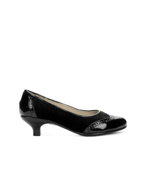 Blunt toed shoe with slip-on styling and brogue details