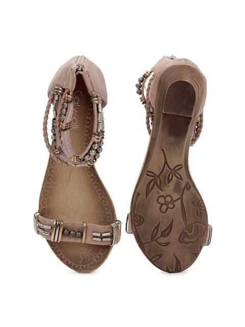 Heel collar with a zipper and four ankle loops heavily embellished with metallic details