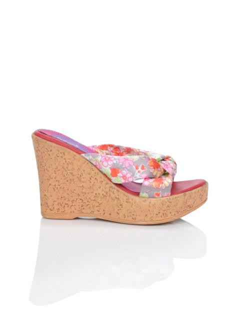 Chunky wedges with a 70's twist - this piece is a modern reinterpretation of the funky vintage aesthetic. Style this with girly outfits it goes perfectly for a vintage vibe with the wood referenced heel and the floral straps.