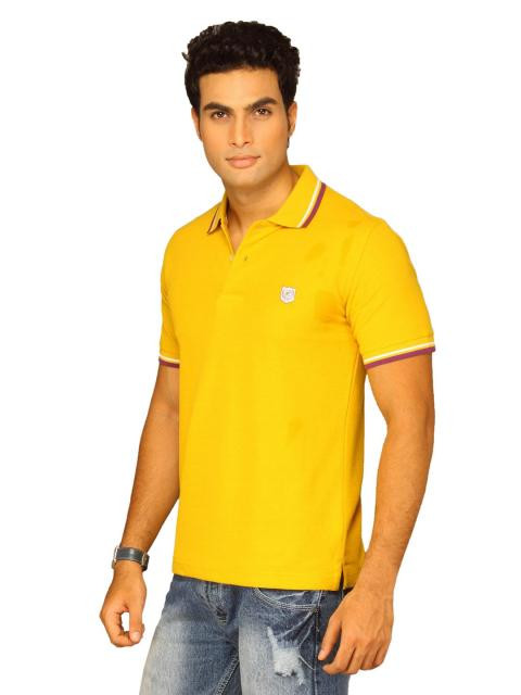 Get ready for a clean sophisticated look in this mustard yellow polo neck tee from classic polo. The polycot fabric wicks away sweat and keeps you fresh and comfortable all day. Team this with jeans or chinos and lifestyle footwear from the wide collection available at myntra for casual occasions.