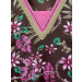 Brown, pink, green and white printed v-neck kurta with a patch on the neckline that has pin tucks, lace, stitch detailing and sequins along the neckline, three quarter sleeves with pin tucks on the cuffs and split side seams