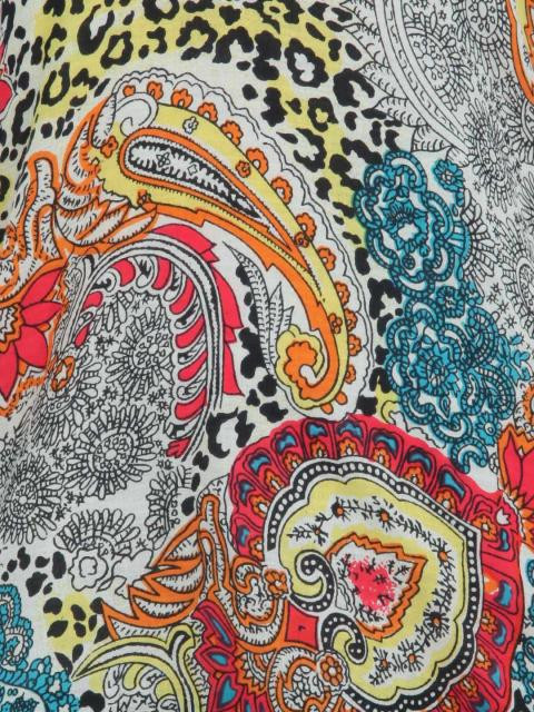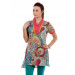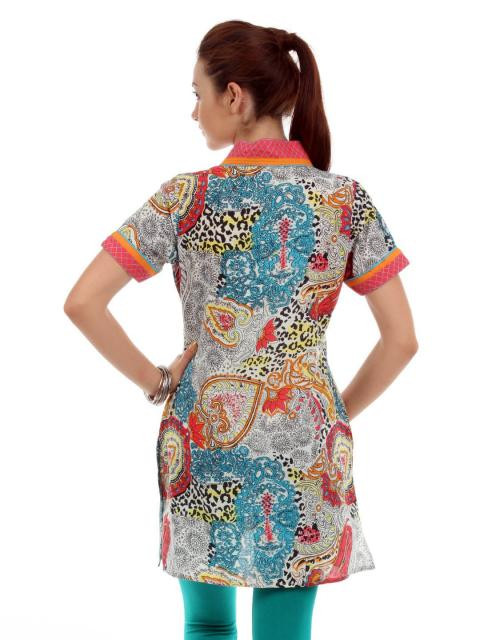 Multi- coloured woven printed kurta, has a mandarin collar with a V-neckline, half fabric button placket, short sleeves with paneling on the cuffs and has side slits