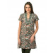 Dark green, orange and white printed kurta that has a mandarin collar with a split neckline, short sleeves, yoke with lace, embroidery and sequins and split side seams