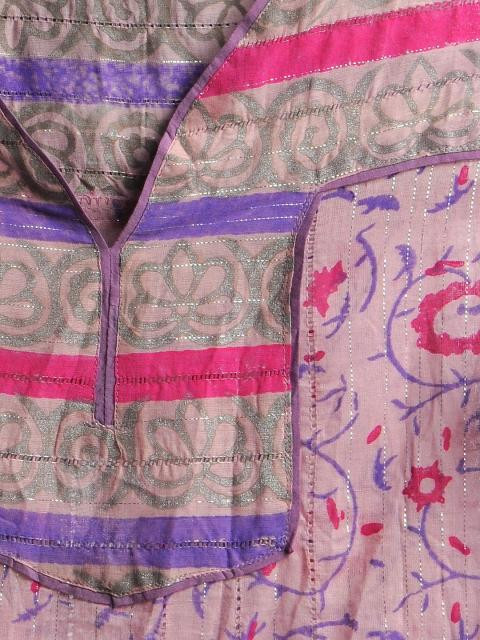 Lavender and pink printed kurta made of 100% cotton fabric, has long sleeves, a V-neckline, yoke on the front and a vented hem
