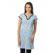 White and blue printed kurta with a round split neckline, short sleeves with tape detailing on the cuffs, tape detailing with sequins along the neckline and split side seams