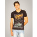 Black V-neck t-shirt made of 100% cotton, with ribbed neckline, \graphic on the front and brand name on the back neck