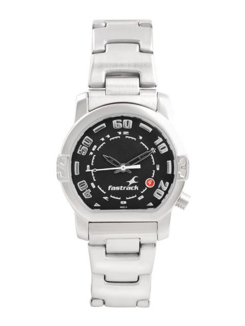Black coloured dial with date display at the 4 hour mark and the branding with logo at the 6 hour mark