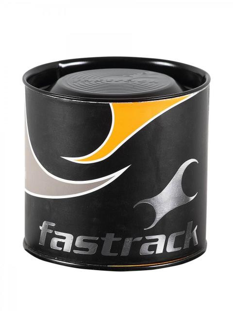 Black coloured dial with branding at the 6 hour mark and brand logo at the 12 hour mark
