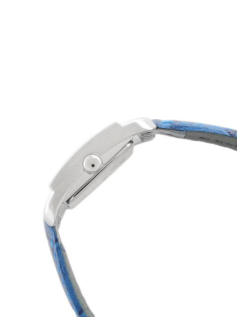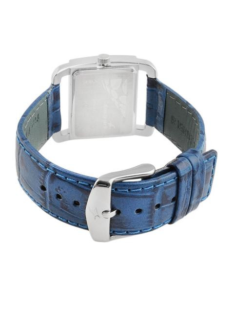Blue leather strap with a tang clasp for comfort and style