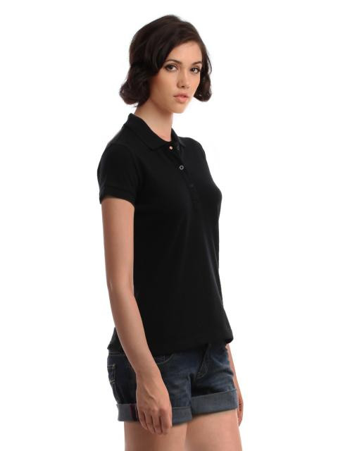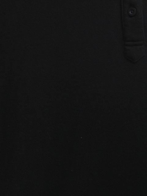 Black polo T-shirt, has a ribbed tipped collar, half-buttoned placket, short sleeves with ribbed cuffs and a vented hem