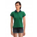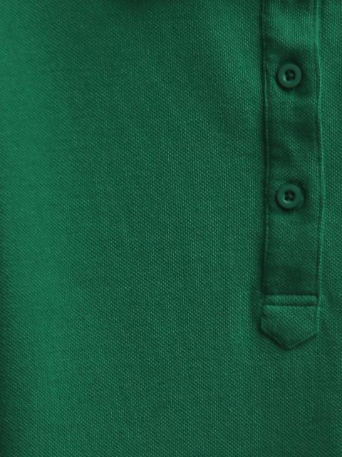 Green polo T-shirt, has a ribbed tipped collar, half-buttoned placket, short sleeves with ribbed cuffs and a vented hem