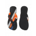 Black flip flops with thong style synthetic straps with fabric on the inside