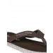 Brown flip flops with thong style synthetic straps with fabric on the inside