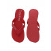 Red flip flops with thong style synthetic straps with fabric on the inside