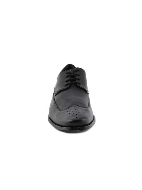 A pair of black formal shoes with central lace-ups