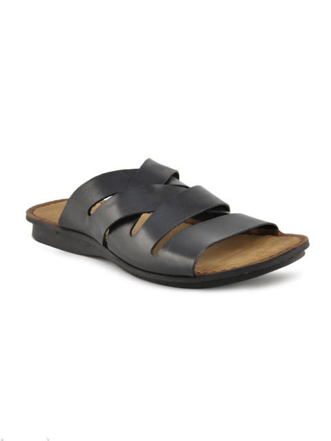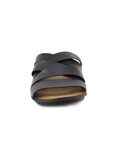 Leather forefoot cross straps with cushioned suede leather footbed for all-day comfort