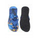 Blue flip flops with foam thong straps with the Adidas patented 3-Stripes logo, fabric toe separator, PU footbed with print, TPR outsole with geometric textured lugs for maximum traction