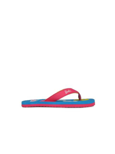 Style NoteThis summer we bring to you a pair of flip-flops from barbie that your little princess will not want to take off! Featuring an attractive print and pink straps, this pair is a unique blend of style and comfort. Team it with a frock and a matching hairband for a hot summer day.Product DetailsBlue flip-flops with print and branding on footbedPink thong style strapsChecked grooves on outsoleMaterial and CareRubberWipe with a clean damp cloth to remove dustDo not store under sunlightStyle Note