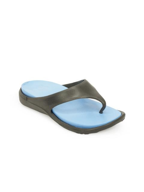Blue coloured soft rubber footbed with embossed branding at the heel region