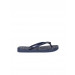 Branded blue rubber thong straps with a heart at the apex of the straps