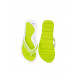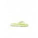 Green flip flop with synthetic leather thong straps and a toe separator