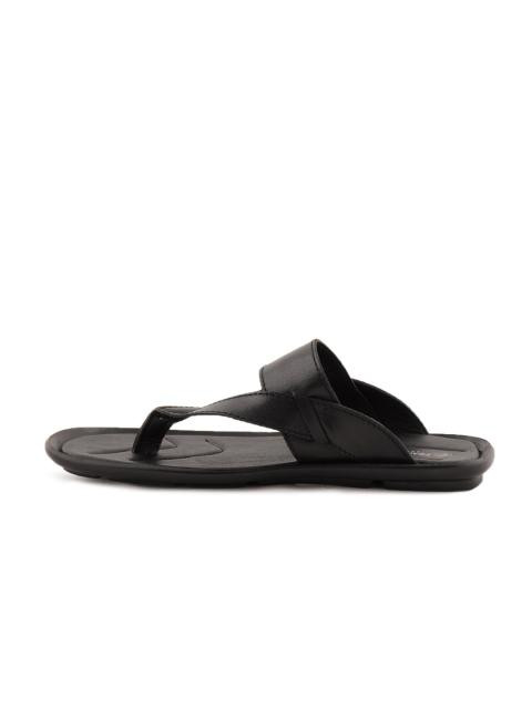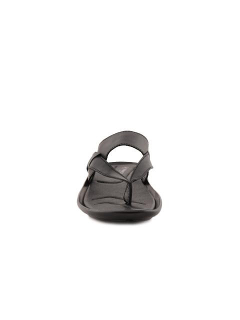 Open toed black sandals with a thong style upper with a midfoot strap, has a toe separator
