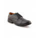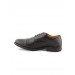 Round toed black shoes with low tops, central lace-ups, perforations on the toe box