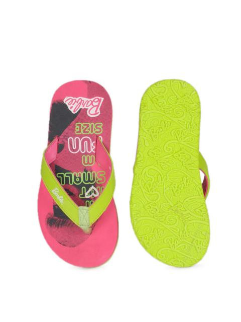 This summer we bring to you a pair of flip-flops from barbie that your little princess will not want to take off! Featuring an attractive print and fluorescent green straps, this pair is a unique blend of style and comfort. Team it with a frock and a matching hairband for a hot summer day.