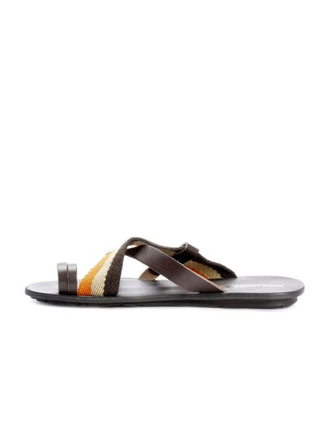 This buckaroo men Vez Brown Sandal is the essence of the brand's signature rugged style. True to its origin from the Mexican plains, this shoe is the essence of the man-about-town nonchalance. It pays tribute to the Texas cowboy lifestyle with its stitch detailing and rivets. Pair it with distressed jeans, casual check shirt and a tonal belt to subtly recapture the masculine style of the Wild West.