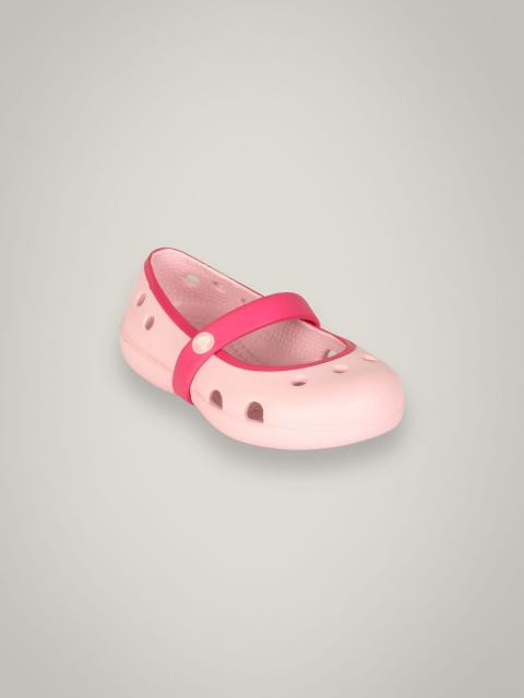 Let your little girl enjoy summer with these happy pink mary janes from crocs. The croslite footbed provides ergonomic Fit and comfort, while the shoes are replete with superior shock absorption. The upper strap ensures a snug fit, while the small holes on the sides can accomodate a few jibbitz. The oval patterns on the outsole enhances grip, making it perfect for a day on the beach or for running around the park.