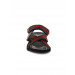 Two criss-cross midfoot straps attached to the ankle strap with a rubber brand badge