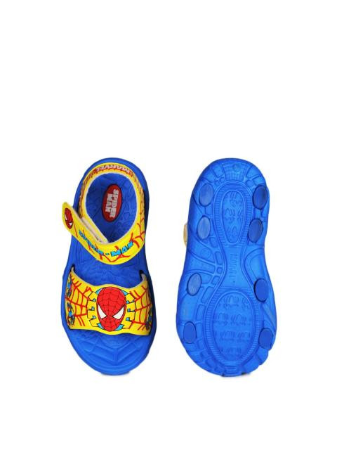 Style NoteGear up your little hero for his everyday adventures with this pair of floaters from Spider-Man. Its cushioned footbed and grooved outsole let him stay on his feet all day long. Pair it with a cotton tee and shorts for an outing in the park.Product DetailsYellow printed synthetic leather straps on the forefoot, midfoot and backfootVelcro closure on the midfoot strap with brandingErgonomically curved footbed with grooves for gripRubber outsole with grooves for absolute grip and tractionMaterial and CareSynthetic, rubberWipe with a clean damp cloth to remove dustDo not store under sunlightStyle Note