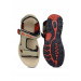 Beige sandals with velcro straps across the forefoot and midfoot and around the backfoot (has mesh inlays)