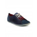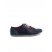 Blue lace-up shoe with red laces