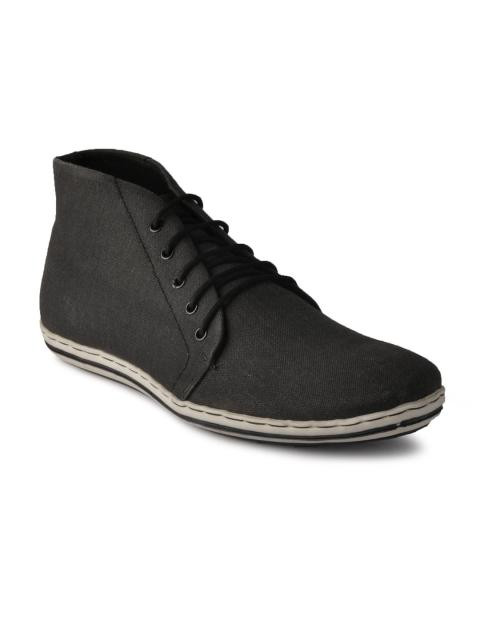Give your casual style a practical, peppy edge with this pair of leather and canvas hi-ankle shoes from carlton london. The white, welted lining makes this pair stand apart from other casual shoes.