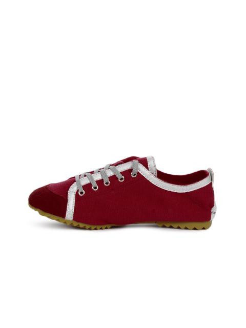 Canvas upper with synthetic overlays at the heel cup and nubuck overlay at the toe box
