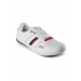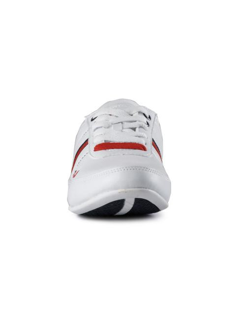 Round toed white shoes with central lace-ups, branding on the upper, padded inner