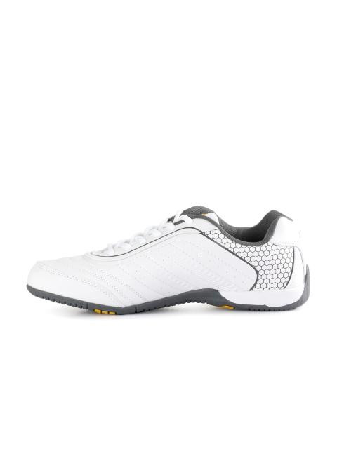 White synthetic leather shoes from numero uno, referenced from the all-sport lifestyle. These versatile shoes can be worn with jeans and tees on a casual day, or to shoot a few hoops with your friends.