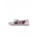 Fabric upper with check patterned overlays for dry comfort